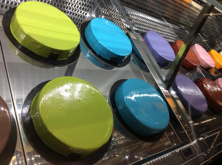 Le dieci coloratissime creazioni stupiscono con gusti insoliti e ricercati, abbinamenti arditi e fuori dal comune. Per la torta verde smeraldo il Re del Cioccolato sceglie il Gorgonzola piccante DOP, arricchito con cioccolato uganda 78%, limone e assenzio.